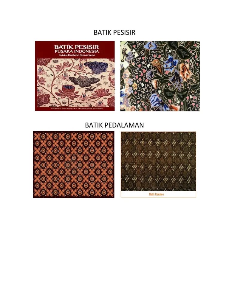 Carilah motif batik has ragam hias batik pedalaman dan batik pesisir.